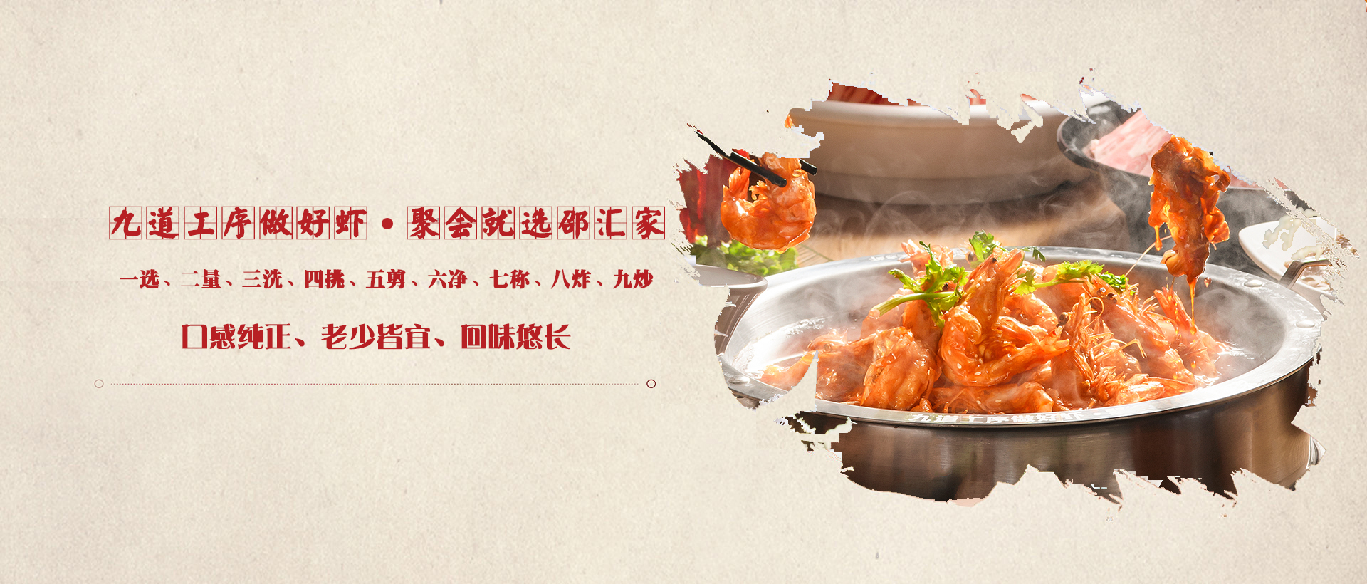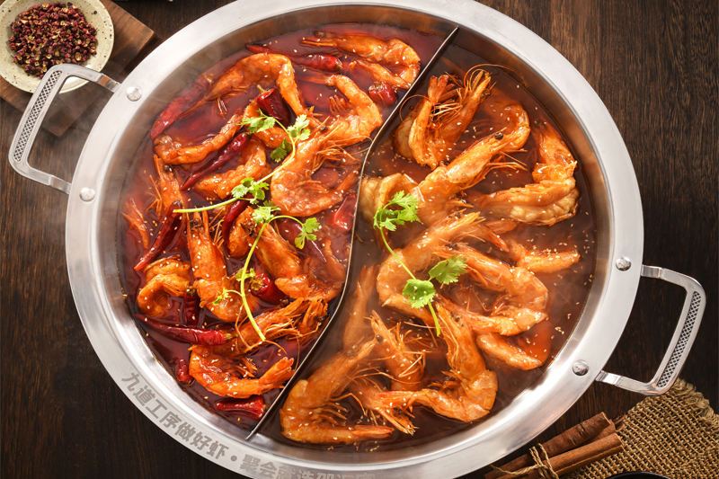 邵匯大蝦擁有強(qiáng)大的后勤保障部門,核心底料由公司中央工廠集中配送,食材精選進(jìn)口大蝦,搭配秘制底料制作而成,研發(fā)出一鍋兩吃的飲食模式(先吃蝦后涮菜,葷素搭配隨心選),打造出綠色健康的飲食新文化。